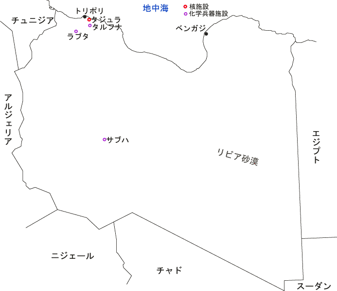 12月22日、IAEAのエルバラダイ事務局長は、「来週、上級専門家チームとともにリビアを訪れる」と発表しました。19日にリビアが化学・生物・核兵器計画を放棄すると発表したのを受けてのことです。リビアは、イスラエルにも同様の措置をとるよう呼びかけています。リビアの核計画に関する情報はあまりないのですが、簡単な年表と地図を載せました。